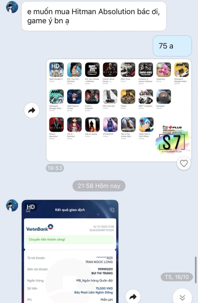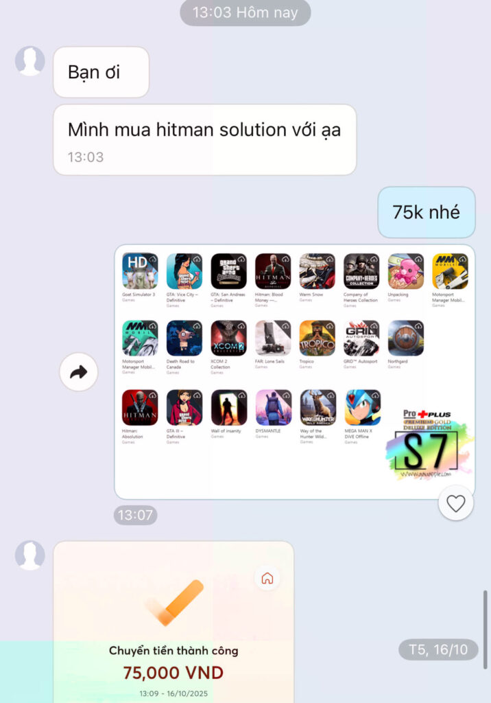 Vâng như các bạn thấy ảnh mô tả bên trên, đó là tất cả các tựa game mà bạn có thể tải khi mua game Hitman Absolution giá rẻ, toàn là các siêu phẩm trên ios với giá trị rất rất cao. Nguyên Combo GTA và Combo Hitman đã gần 2.000.000vnđ rồi thưa quý vị. Còn chưa kể các game khác nữa vậy mà ID Apple này cho thuê chỉ với giá 70.000vnđ, game tải về máy chơi được vĩnh viễn.